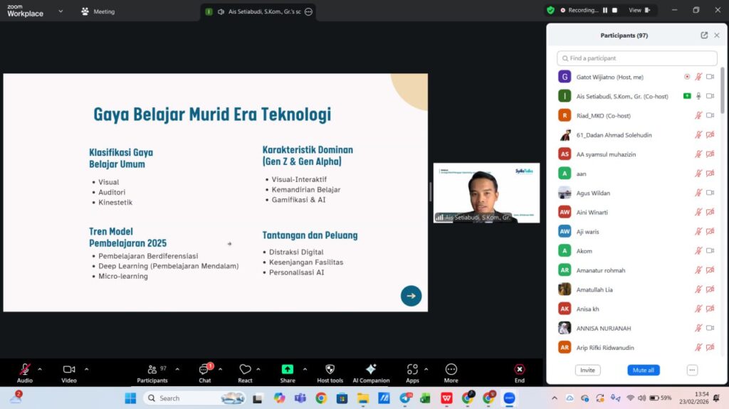 SUBANG – Perkembangan teknologi kecerdasan buatan (AI) kini menjadi fokus utama bagi dunia pendidikan. Hal ini dibuktikan dengan suksesnya gelaran webinar bertajuk “Strategi Efektif Mengajar: Optimizing Learning with AI Tools” yang diselenggarakan oleh Pusdiklat As-Syifa pada Senin, 23 Februari 2026. Melalui program SyifaTalks, acara ini berhasil menarik perhatian ratusan tenaga pendidik yang hadir mengikuti sesi secara antusias dari lebih dari 20 instansi pendidikan yang berbeda.